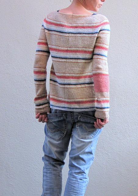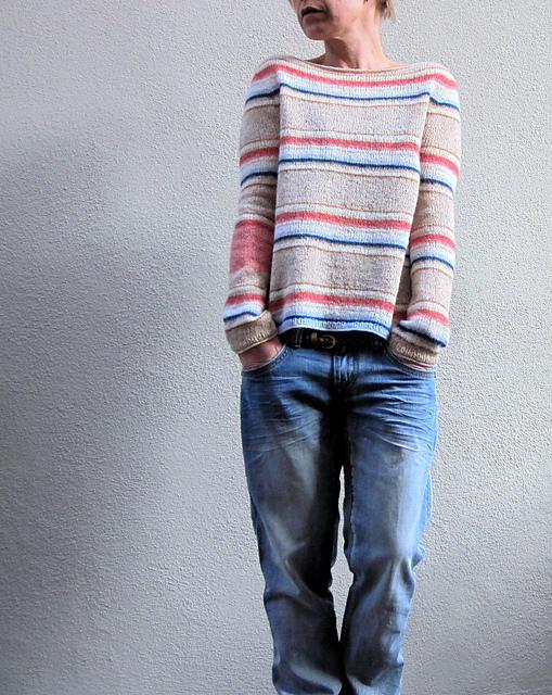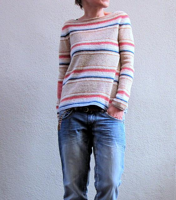 Hanami ist ein lässiger, quer gestreifter Pullover mit verschiedenen Akzentfarben von der bekannten Designerin Isabell Kraemer. Das Modell wird nahtlos von oben nach unten gefertigt. Dabei kommen unterschiedliche Stricktechniken zum Einsatz, die anhand von Internet-Videos anschaulich erklärt werden.
