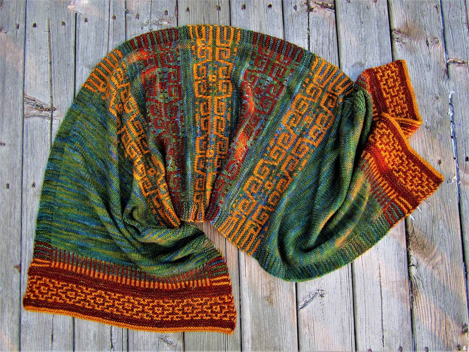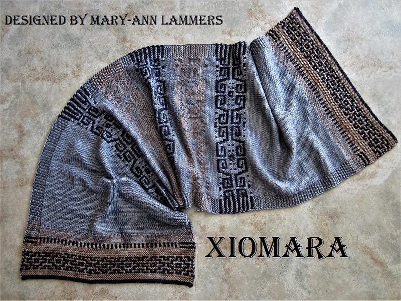 Als ich dieses Modell das erste mal sah, dachte ich sofort an einen nebligen Urwald in Südamerika, hörte Klänge von Blättern und Trommeln und hatte Bilder mystischer Azteken-Tempel im Kopf. Und tatsächlich birgt das Design um dieses Tuch ein echtes Geheimnis. Wer traut sich, das Geheimnis zu lüften und seinen eigenen Xiomara zu erschaffen?