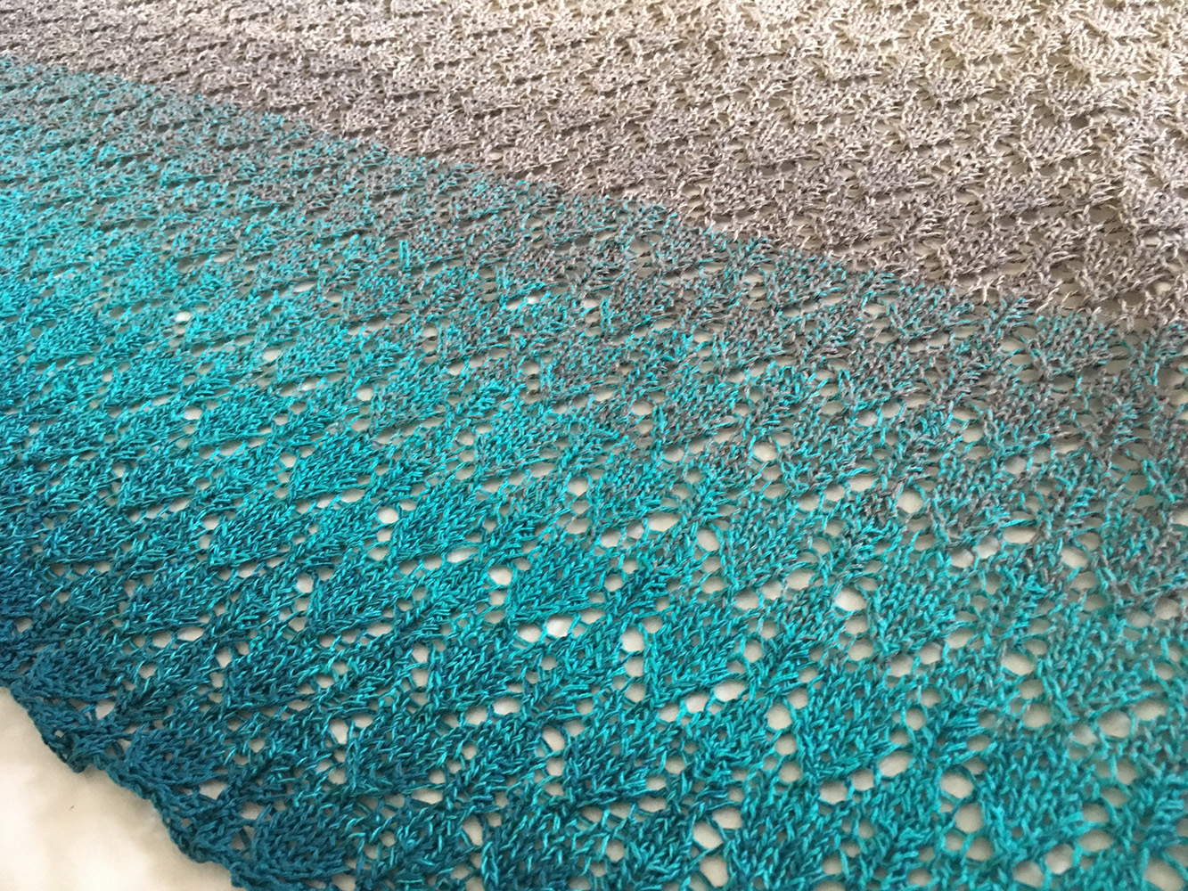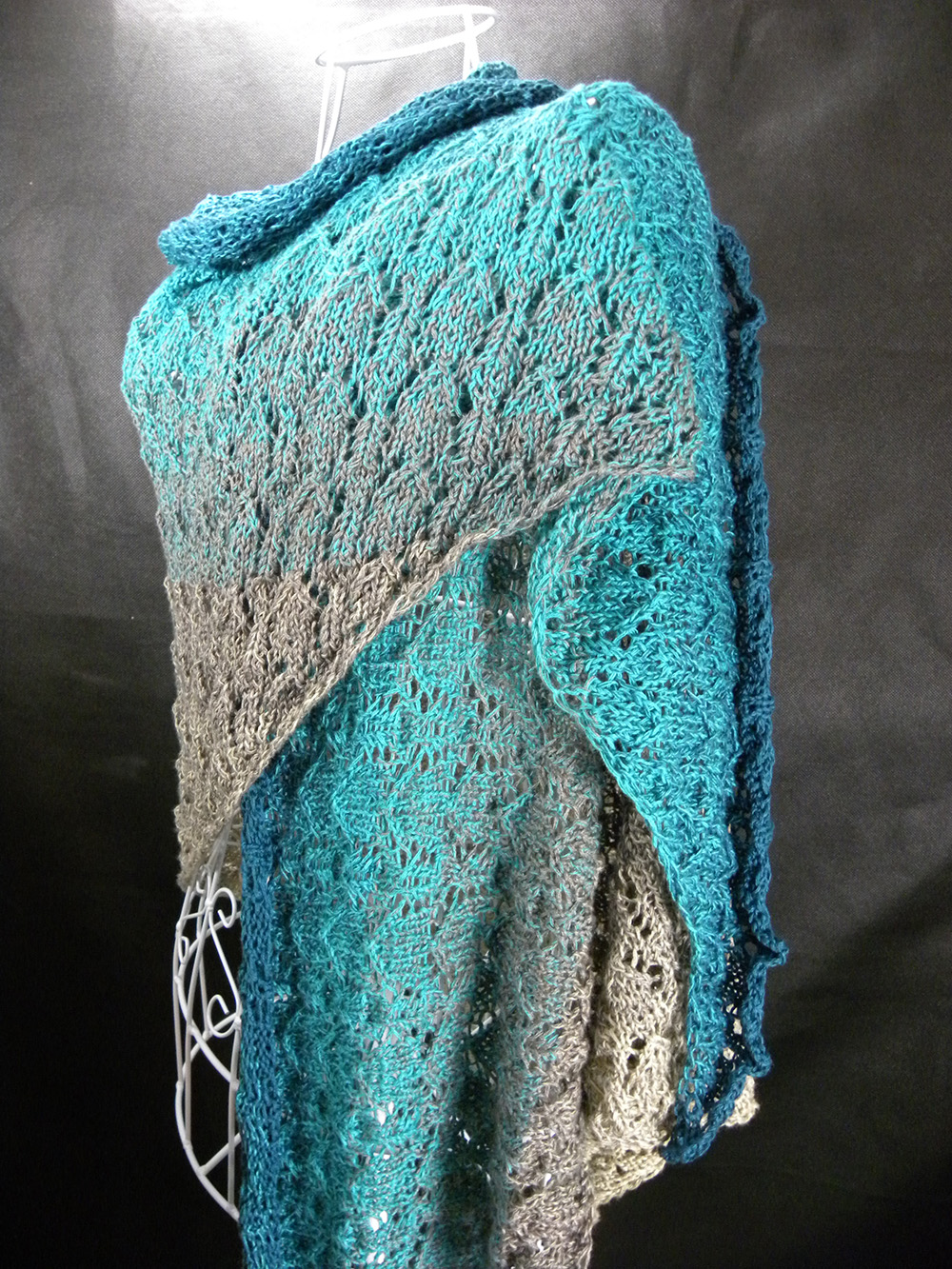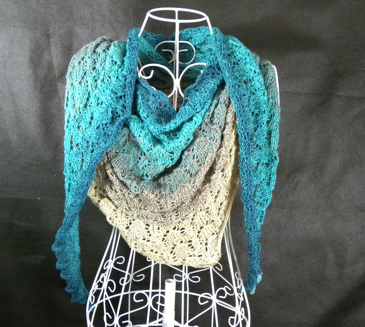 Sucht euch eure Farben aus und strickt das lace-gemusterte Dreiecks-Tuch "Jubiläum" nach der Anleitung von Veronika Hug.
